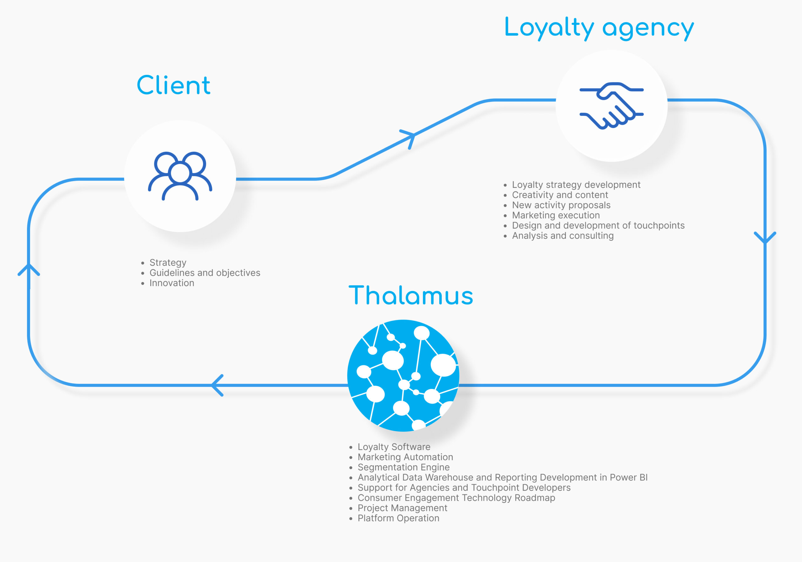Join Thalamus and transform your agency's capacity to acquire and manage new accounts. With a track record of over 20 years and a proven presence in over 25 countries and 4 continents with clients ranging from major corporations like Shell, Renault, McCain Foods, and BASF to small and medium-sized enterprises (SMEs), we offer the full functionality of large platforms, but at a highly competitive cost.